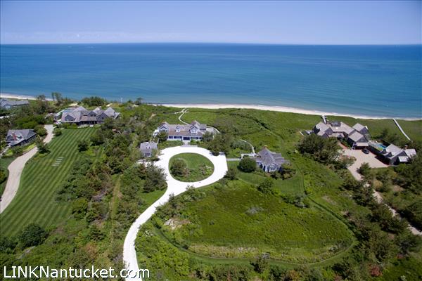 An outstanding property consisting of two homes, each sitting on nearly two acres; offered together, the main house, studio and cottage overlook four acres of ocean-front real estate on the north shore of Nantucket Island. The property boundaries extend from the grassy dunes, across the beach to the mean high tide line of Nantucket Sound. This is a rare portion of the Island undergoing accretion of land rather than erosion. Looking from the stairs leading down to the beach, to your left Tuckernuck Island is visible. To your right Great Point can be seen. On a sunny day, the water glows deep blue. Children can enjoy the gentle surf that is common on the north shore.