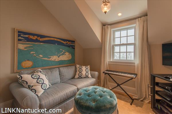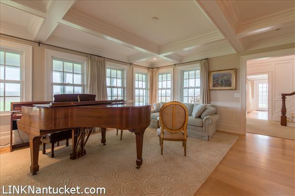 A master suite and two additional en suite bedrooms each open to it’s own private deck overlooking the grand lawn and sunrise over the Atlantic. The south facing library makes for the perfect escape, while the children’s wing and sitting room lead to another en suite bedroom at the rear of the house.