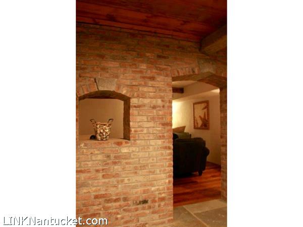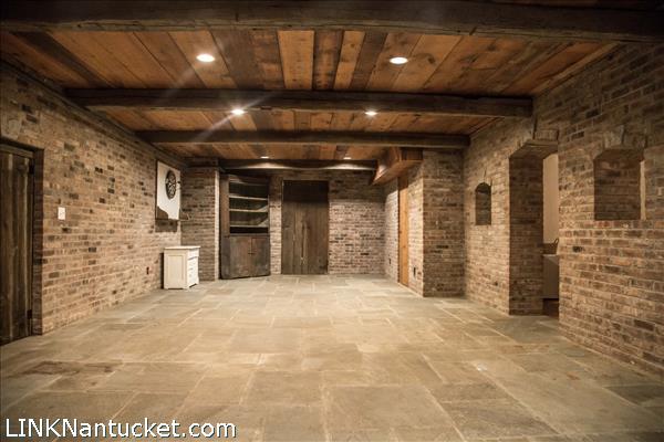 Very large finished basement with stone floors has a cozy Italian cavern feeling. A spacious central great room offers many uses, with an adjacent brick-walled living area currently a movie theater space. A deep walk-in storage closet is ready to be a wine cellar. A separate room with with walkout entrance has a private bathroom featuring a large dual-head walk-in shower, plus a separate laundry room and unfinished storage space. A large cedar closet for off-season clothes storage and ample unfinished storage space is at the other end of the lower level.