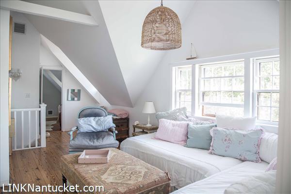 Upstairs space is its own private getaway complete with a living room lounge area that has a cathedral ceiling and lots of light. There is a queen bedroom and a second bedroom with two twin beds, which share a sunny full bathroom equipped with a shower and Jacuzzi soaking tub.